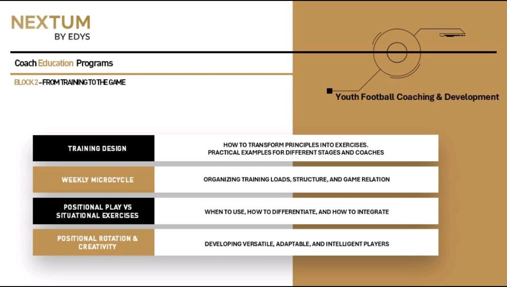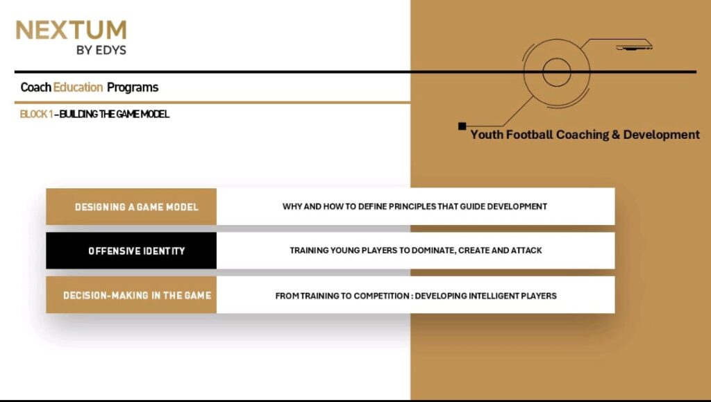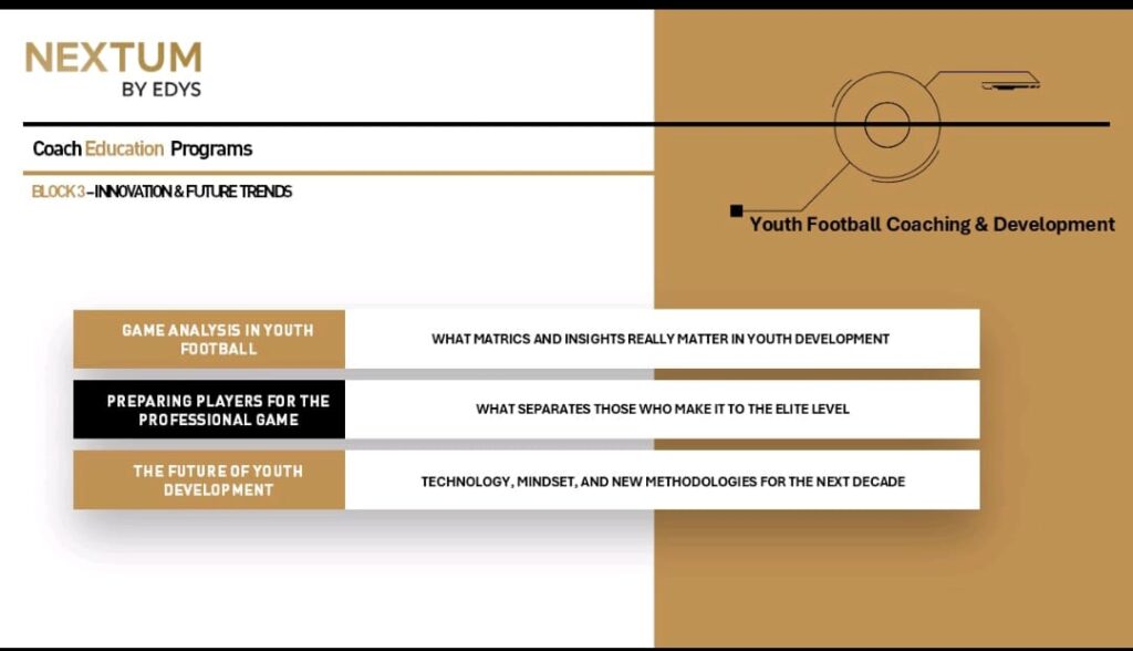 NEXTUM by EDYS is a modern coach-education brand focused on youth development. They support coaches with practical methodology, game-model principles, and high-quality training resources that help build intelligent, confident players.